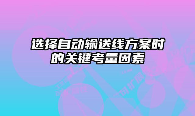 選擇自動(dòng)輸送線方案時(shí)的關(guān)鍵考量因素